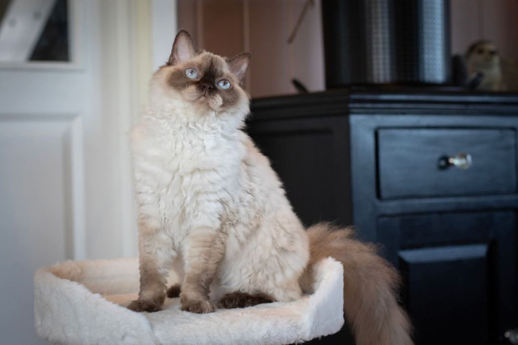 Sjokolade colorpoint – homozygot (dobbel krøllegen)